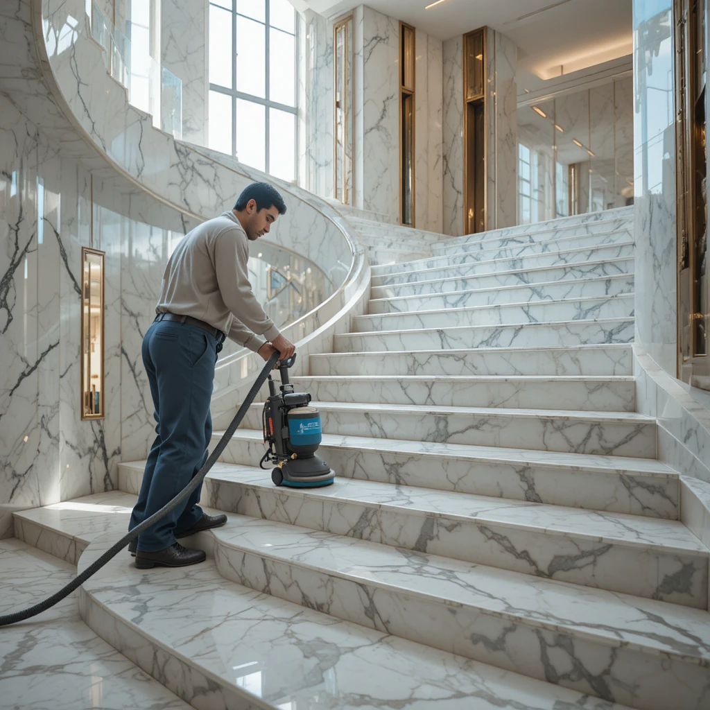 امنح درجك الرخامي أو البلاطي لمسة نهائية ناعمة ولامعة. تعمل خبرتنا في التلميع على استعادة اللمعان، وإزالة البهتان، وتعزيز السلامة بمظهر لا تشوبه شائبة.